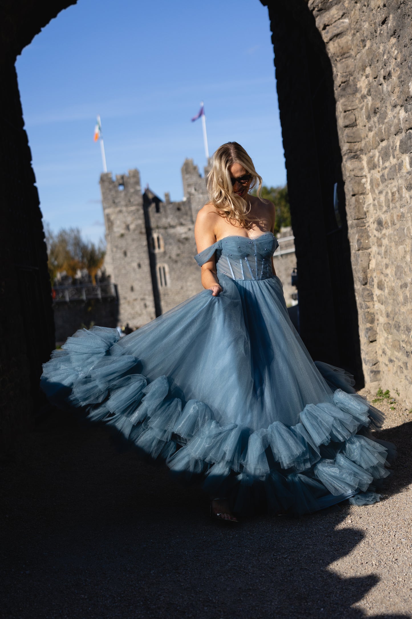 You try shapes, fabrics, movement — not to “pick a dress,” but to discover what feels like you.